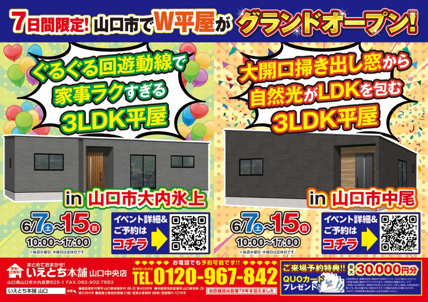 【山口市】ぐるぐる回遊動線!家事がラクすぎる3LDK平屋が山口市大内氷上にOPEN!
