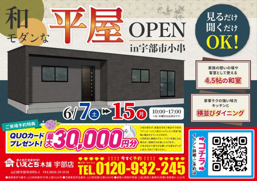 【宇部市】3LDKの平屋に和室付き!宇部市小串で必見の見学会がOPEN!