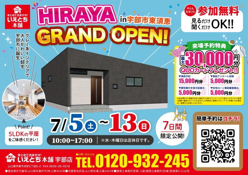 【宇部市】驚きの5LDK平屋!宇部市東須恵で7日間限定見学会開催!