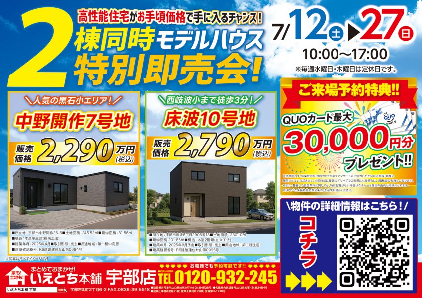 【宇部市】宇部市で2棟同時即売会開催!新築ご検討中の方は必見です!!
