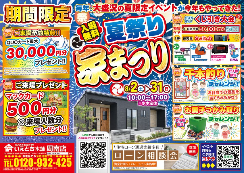 【周南店】毎年大盛況の夏限定イベント!!いえとち本舗夏祭り*家まつり開催!
