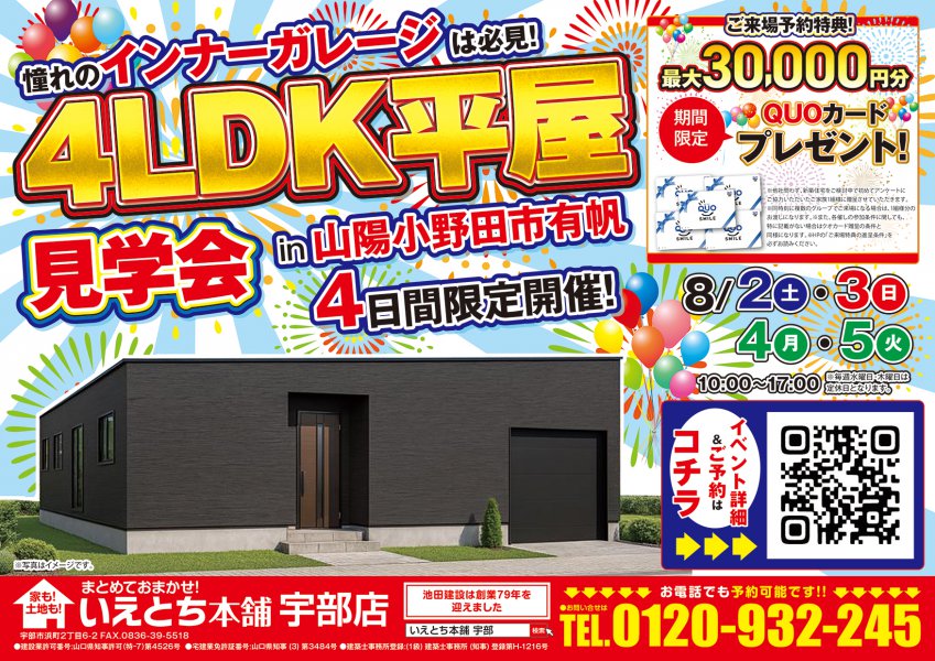 【山陽小野田市】収納力バツグン!有帆エリアのインナーガレージ付き4LDK平屋を見学
