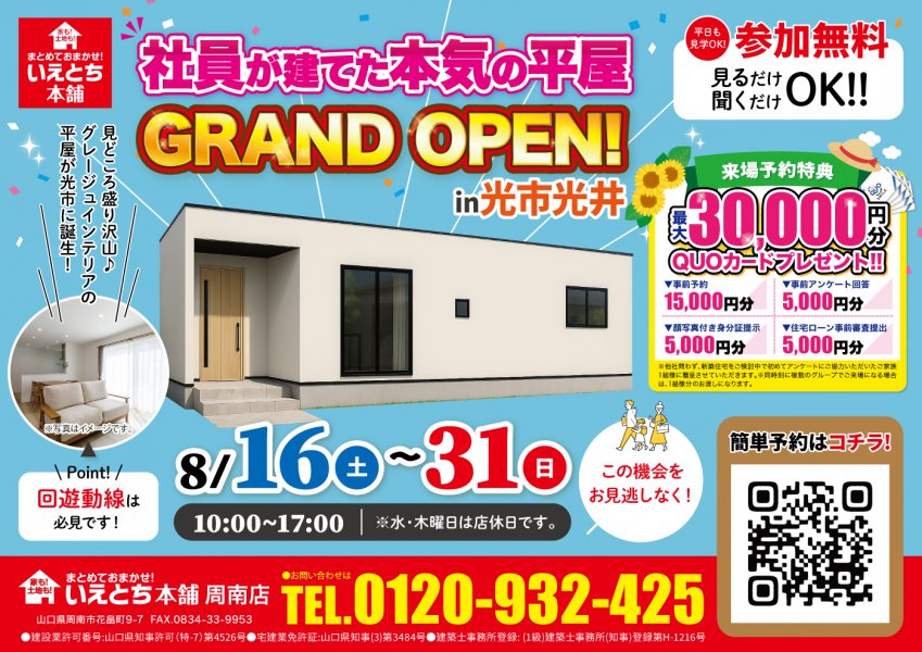 【光市】社員が理想を形にした住まい!猫部屋やパントリーなど見どころ満載の3LDK平屋 in 光井