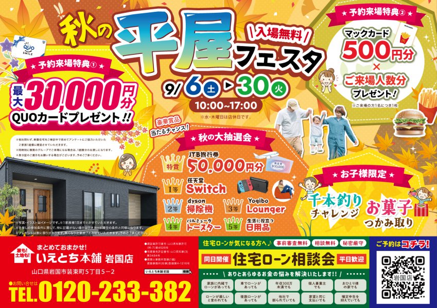 【岩国店】秋の平屋フェスタ開催!豪華抽選会・お子様イベントも楽しめる特別企画☆