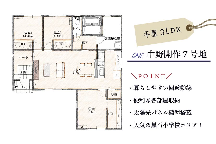 \\平屋3LDK*ひろびろリビングの中野開作7号地分譲//