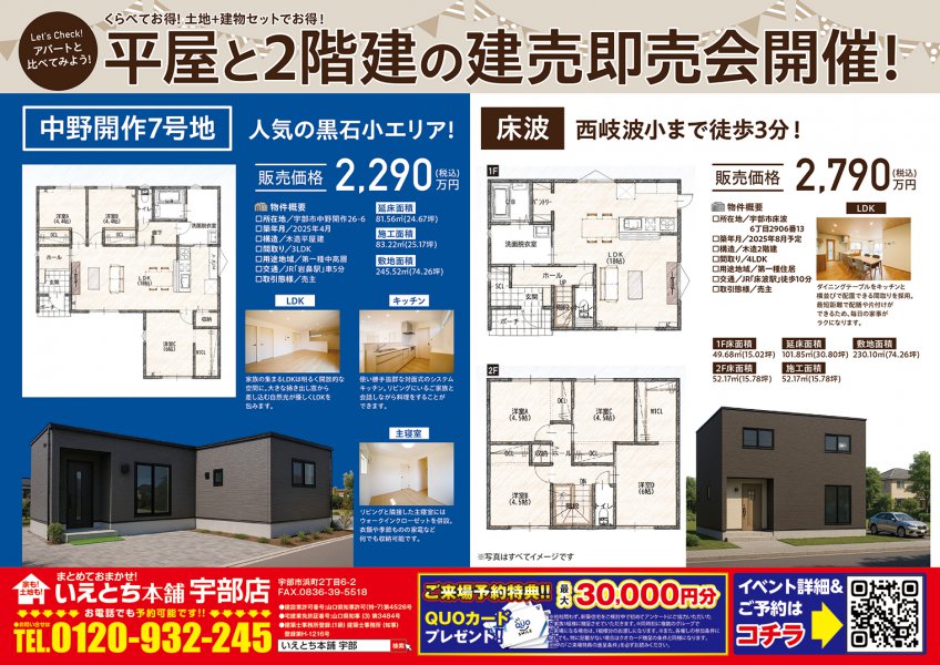 【宇部市】平屋と2階建てを同時に見学!中野開作&床波で2棟公開中!