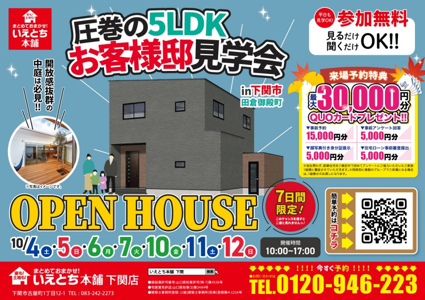 【下関市】人気のライトコートやパントリーなど、家づくりのヒント満載!下関市田倉御殿町でお客様邸見学会開催