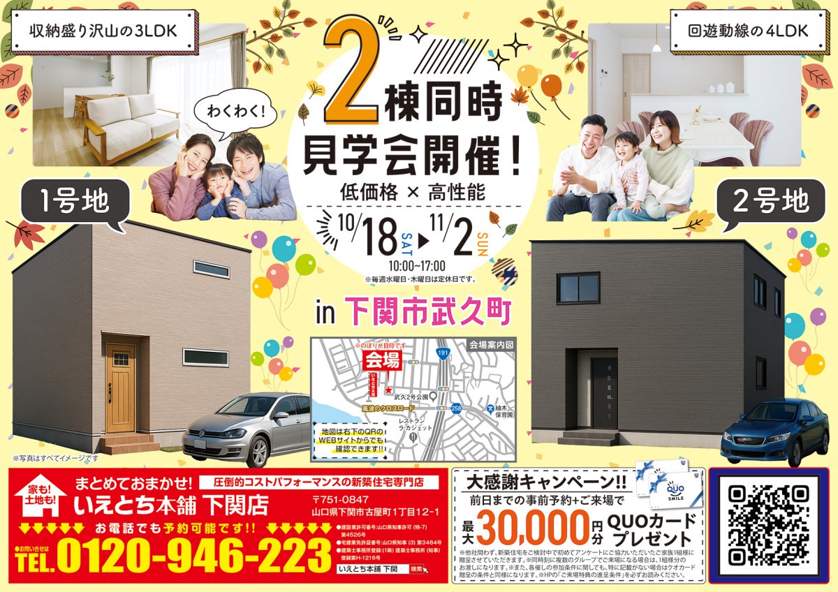 【下関市】販売中の2階建て分譲住宅 2棟同時見学会【リアルな住まいを体感】