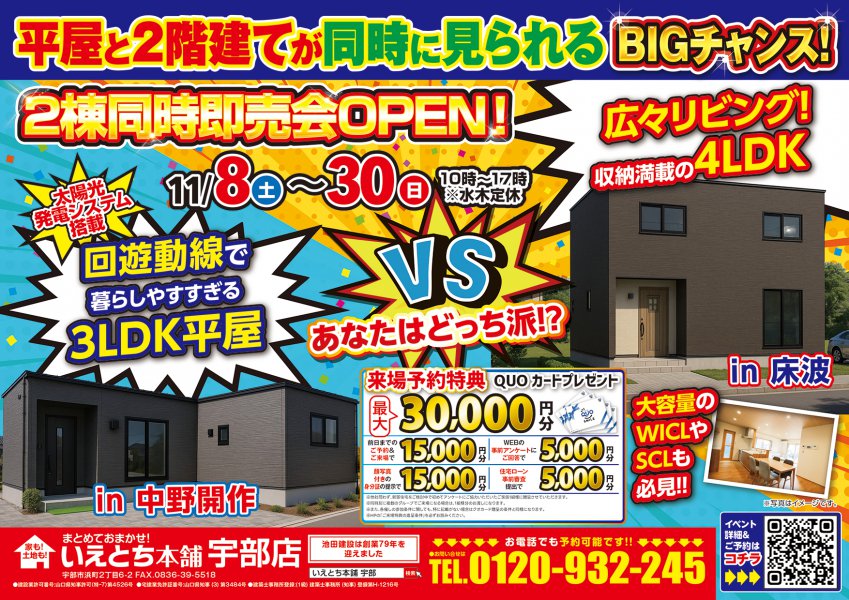 【宇部市】販売中の床波2階建て&中野開作平屋 2棟同時見学会【リアルな住まいを体感】