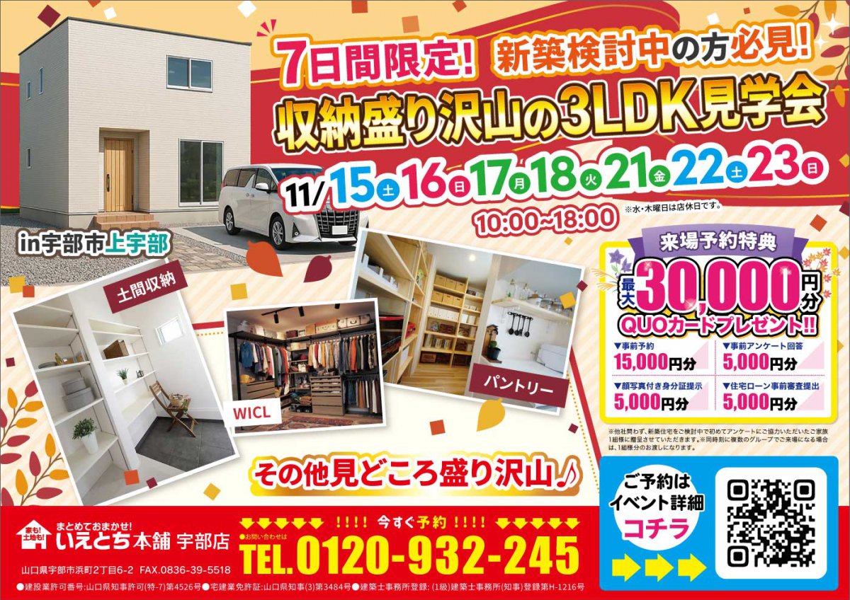 【宇部市】パントリー・WICL・納戸付き!収納充実の2階建て!宇部市上宇部でお客様邸見学会開催