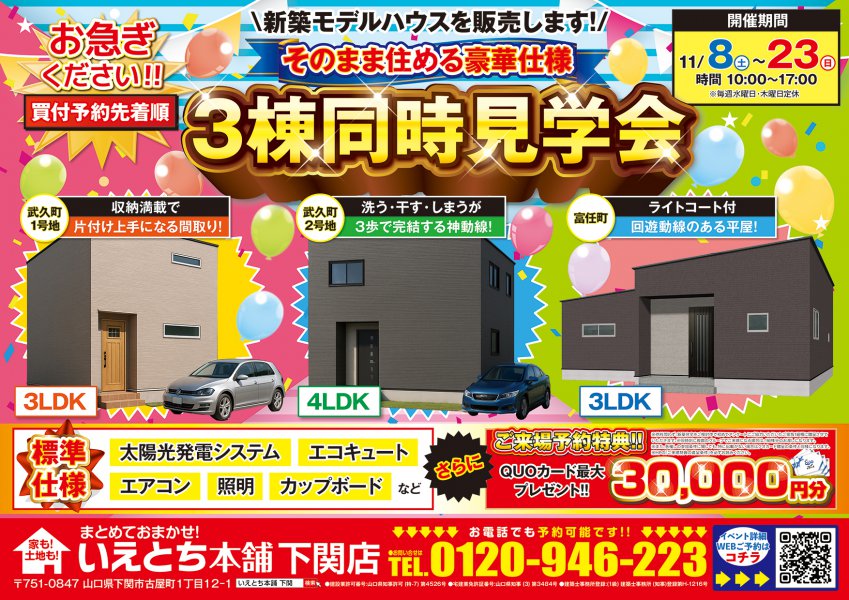 【下関市 富任町・武久町】平屋×2階建て 3棟同時見学会|理想の暮らしを“リアルに見比べ”!