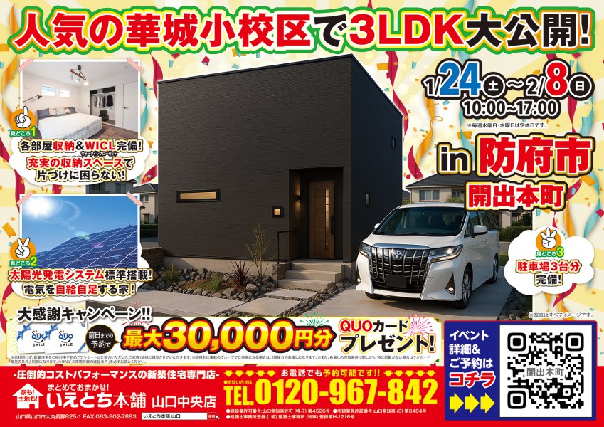 【防府市開出本町】18帖LDKが魅力!家族時間がもっと楽しくなる27坪3LDKの家 見学会