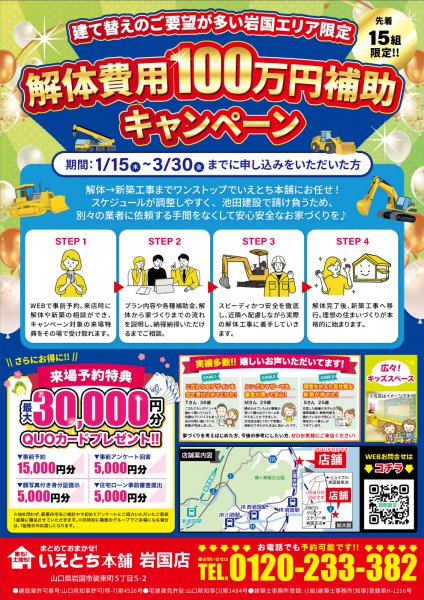 【岩国限定!】解体費用100万円補助キャンペーン‼お得にワンストップでお家を建てるチャンス!