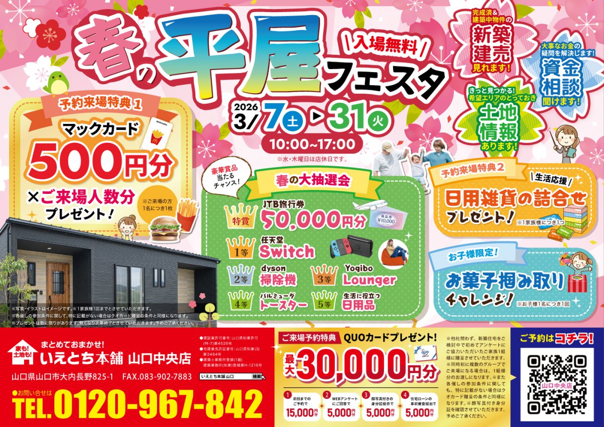 【春の平屋フェスタ】平屋の家づくり相談会!希望エリアの土地情報もご案内|長門店