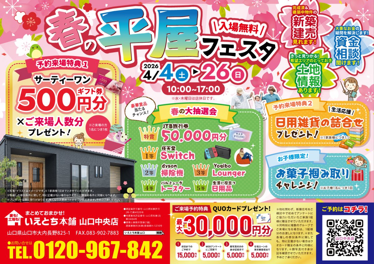 【春の平屋フェスタ】平屋の家づくり相談会!希望エリアの土地情報もご案内|山口中央店