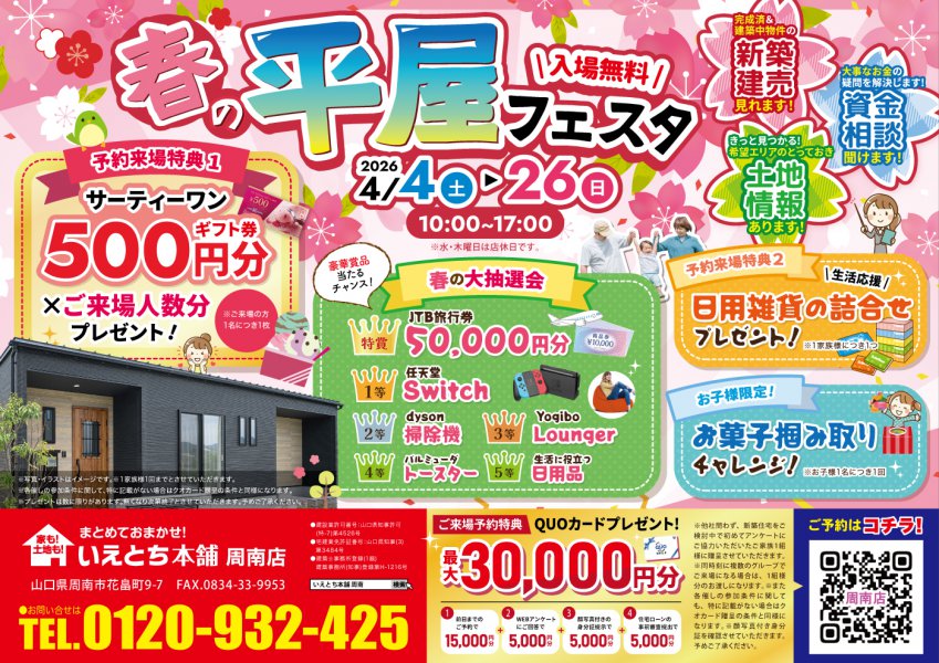 【春の平屋フェスタ】平屋の家づくり相談会!希望エリアの土地情報もご案内|周南店