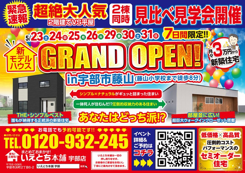 【宇部市藤山】超絶大人気!2棟同時見比べ見学会