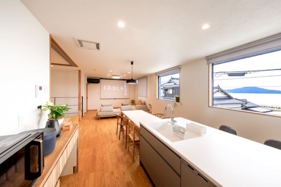 海が一望できるフルフラットキッチン