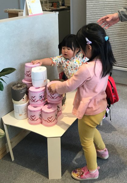 ★30秒でトイレットペーパーを11段積み上げ