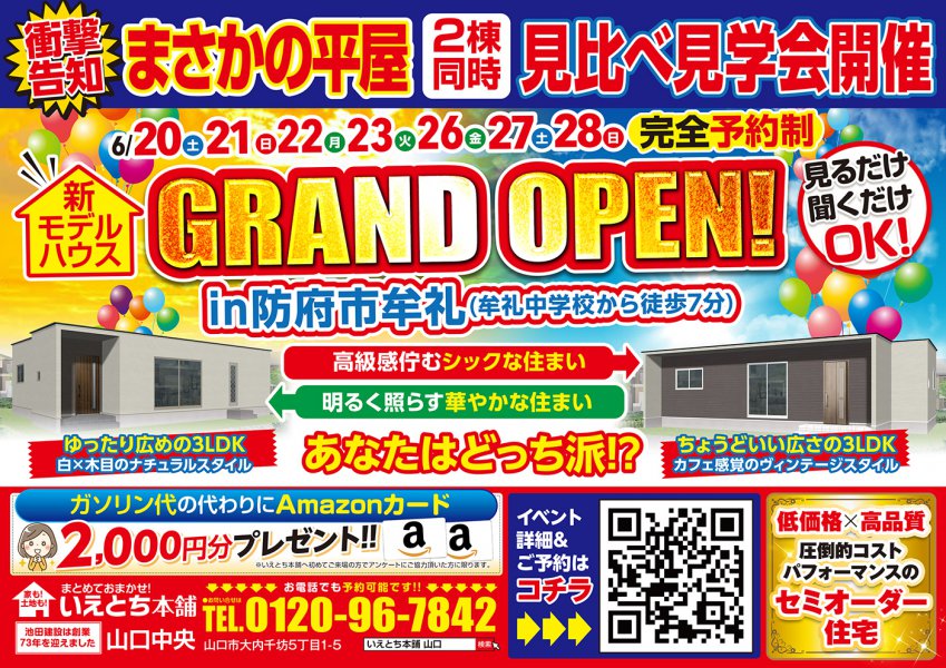 【防府市牟礼】まさかの平屋2棟同時見比べ見学会