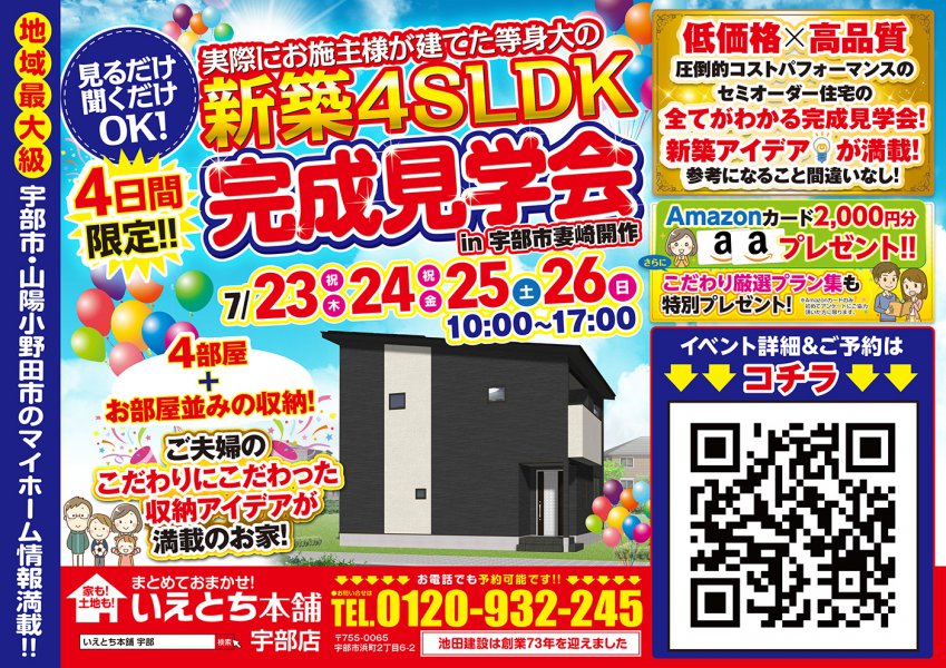 【宇部市妻崎開作】実際にお施主様が建てた等身大の新築4SLDK完成見学会