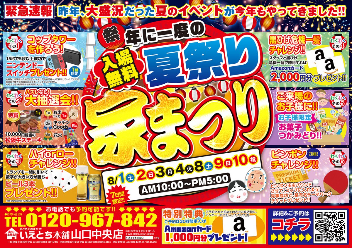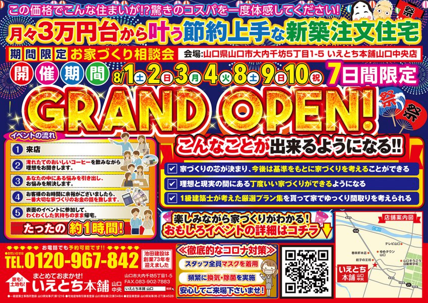 | 場所 | 山口県山口市大内千坊5丁目1-5 いえとち本舗山口中央店 (MAP) | 時間 | 10:00~17:00 |