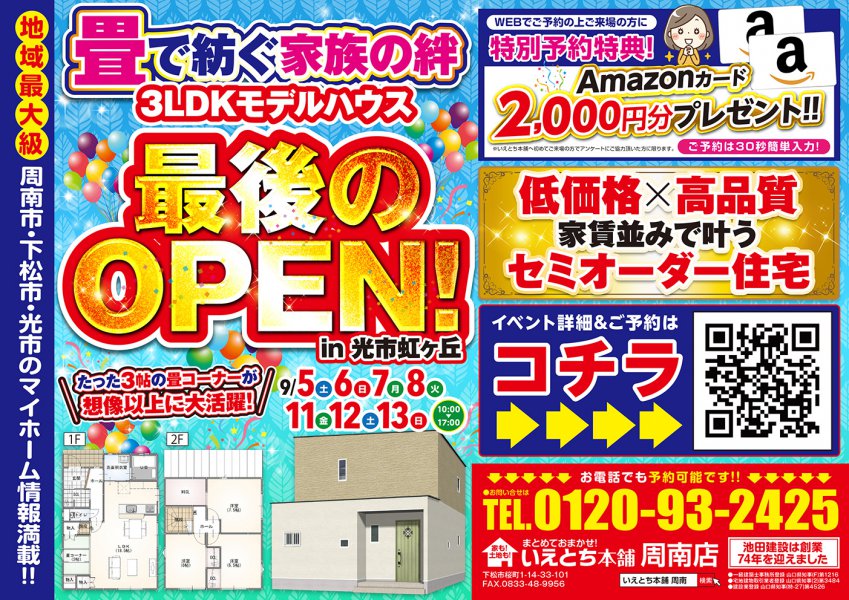 【光市虹ヶ丘】畳で紡ぐ家族の絆3LDKモデルハウス最後のOPEN!