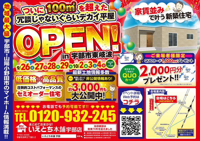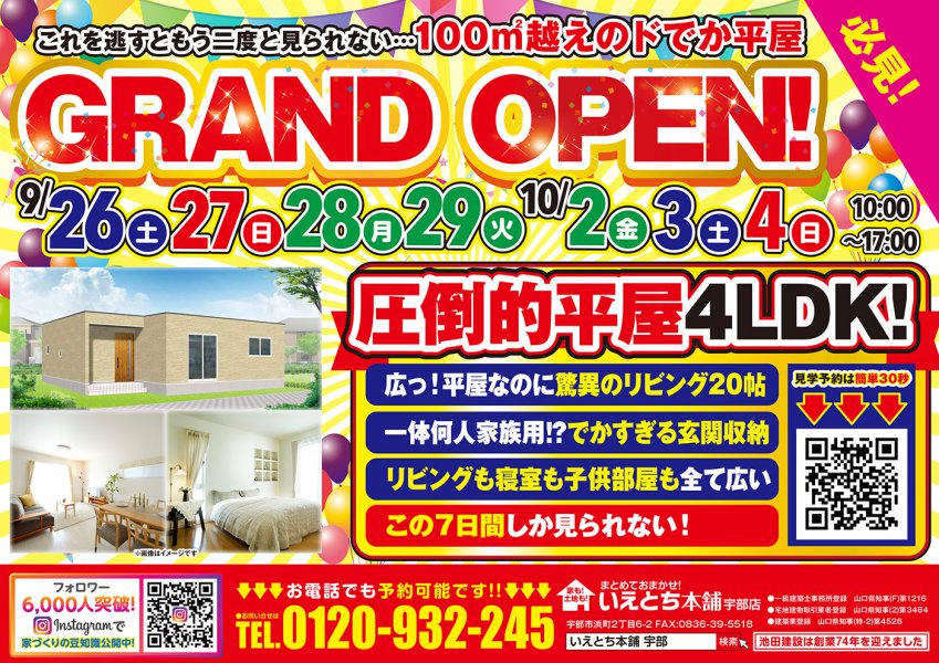 【宇部市東岐波】ついに100㎡を超えた!冗談じゃないくらいデカイ平屋OPEN