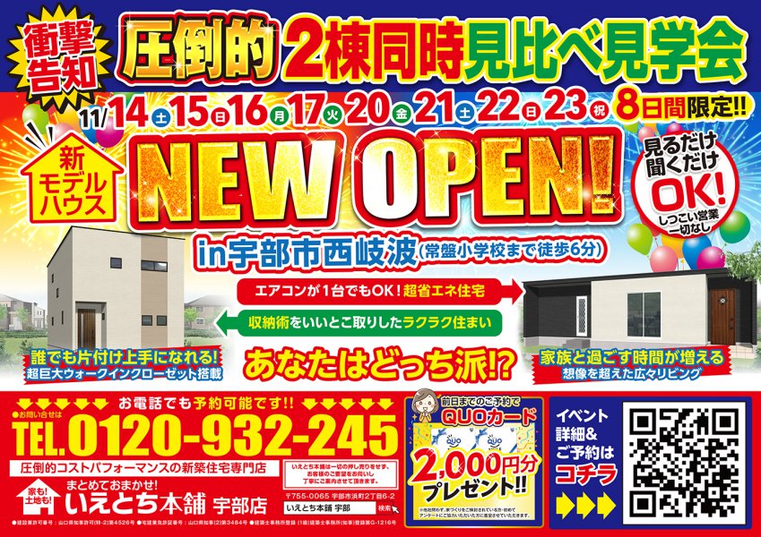 【宇部市西岐波】圧倒的2棟同時見比べ見学会開催!