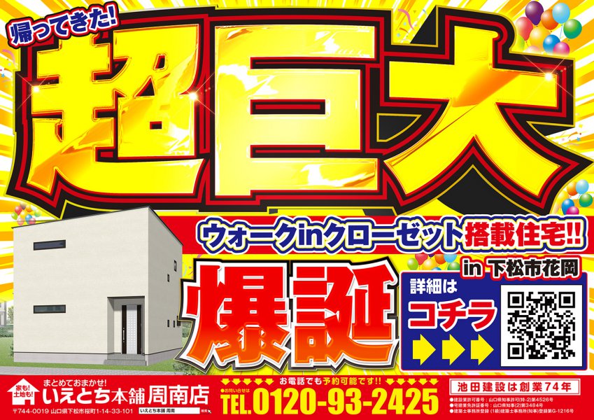 【下松市花岡】超巨大ウォークインクローゼット搭載新築住宅OPEN!
