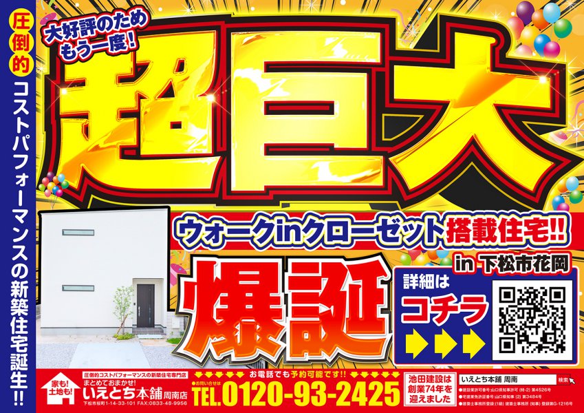 【下松市花岡】超巨大ウォークインクローゼット搭載新築住宅OPEN!