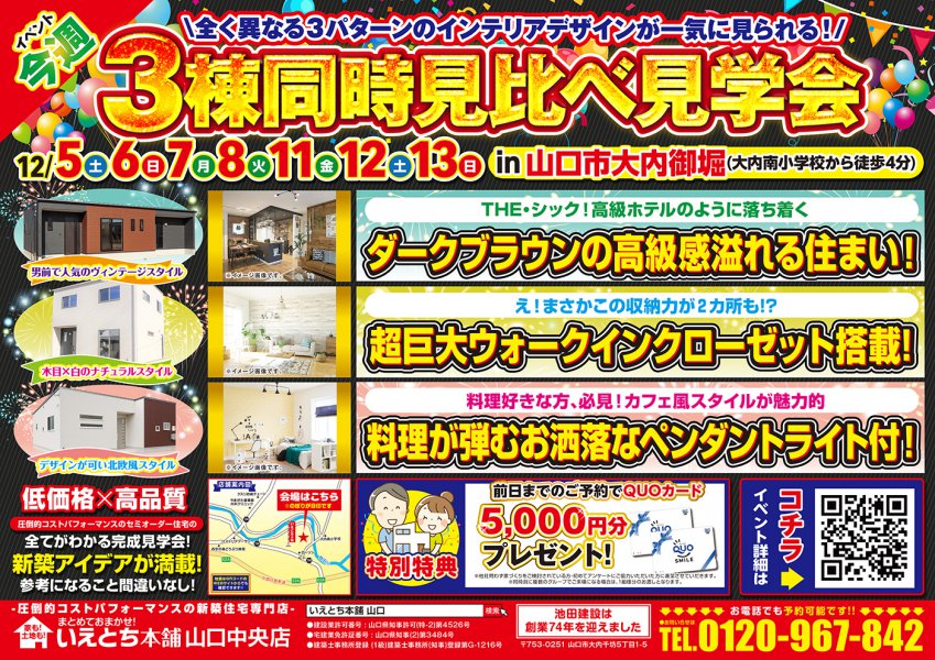 【山口市大内御堀】圧倒的コストパフォーマンス新築住宅3棟同時見学会