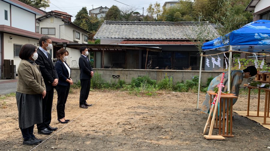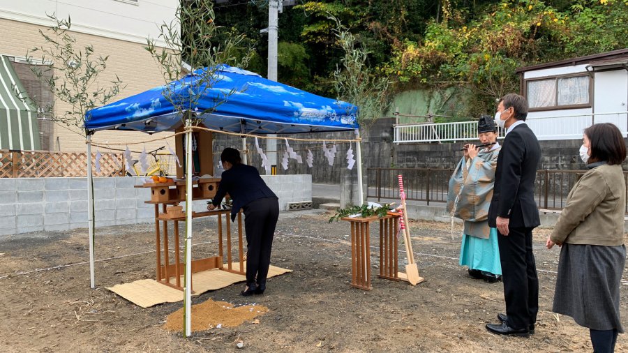神主さんに来ていただき、無事地鎮祭を終えました(^o^)
