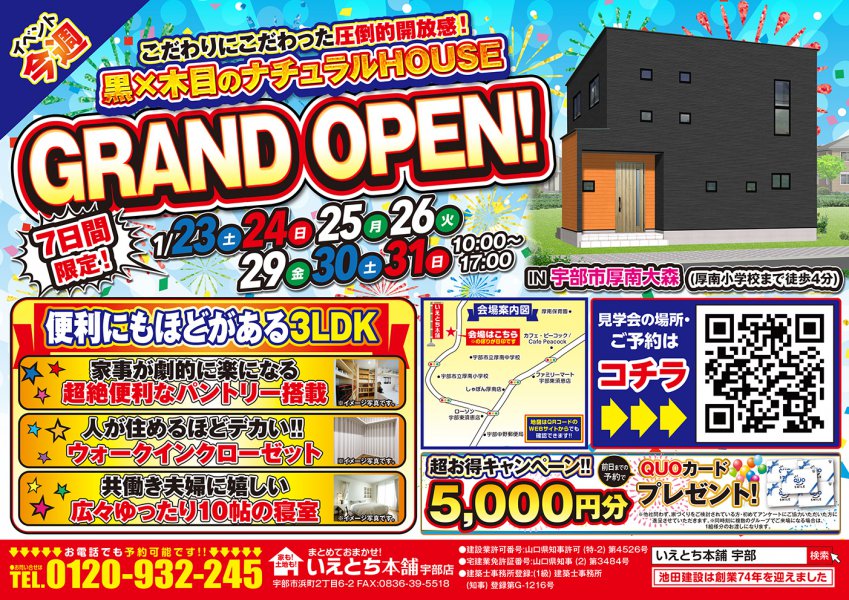 【宇部市厚南大森】こだわりの圧倒的開放感!白×木目のナチュラルHOUSE