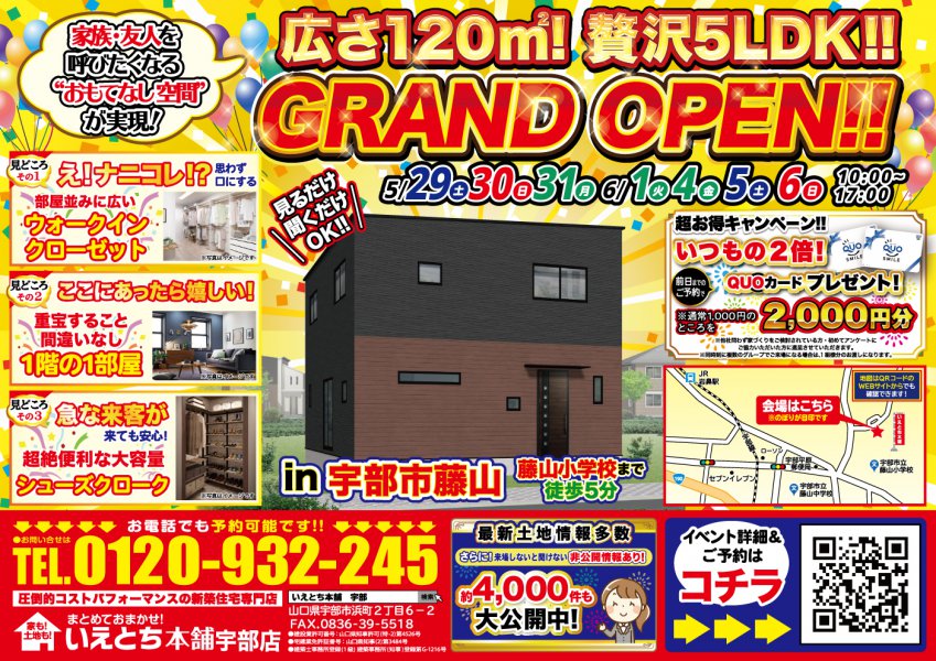 【宇部市藤山】広さ120㎡!大家族でもオシャレに暮らせる5LDK誕生!