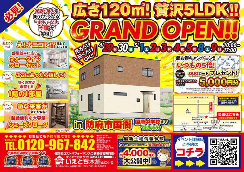 【防府市国衙】広さ120㎡!惚れ惚れする贅沢5LDK誕生