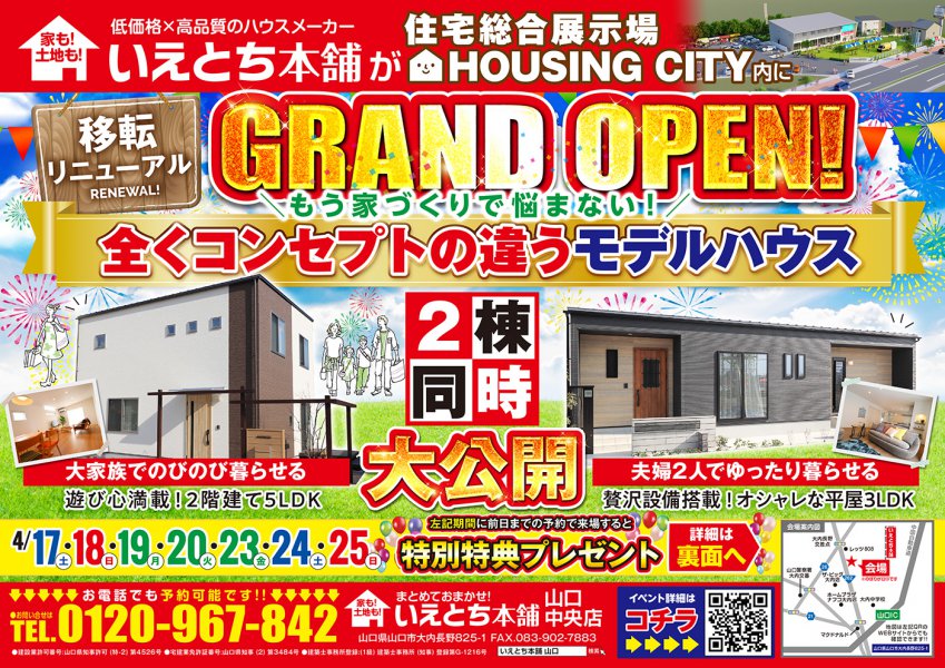 いえとち本舗山口中央店リニューアルオープン!特別来場特典プレゼント!