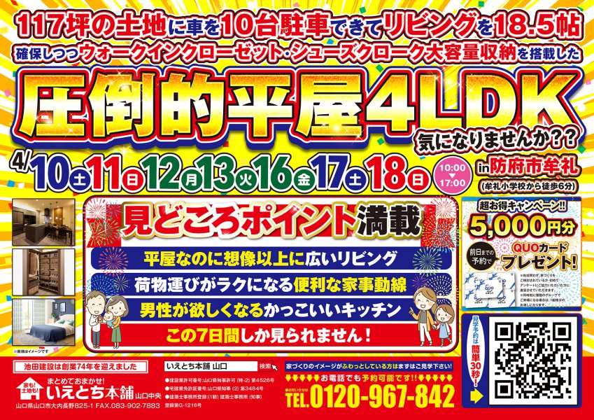 【防府市牟礼】広さ100㎡超え!開放感抜群の平屋4LDK誕生!