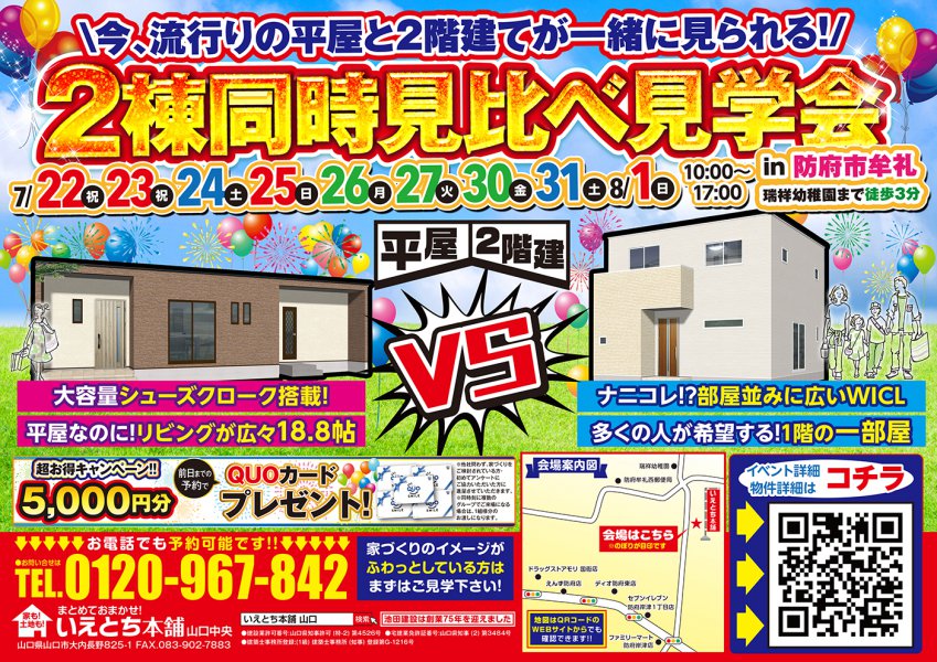 【防府市酢貝】2階建てVS平屋 究極の2棟同時見比べ見学会