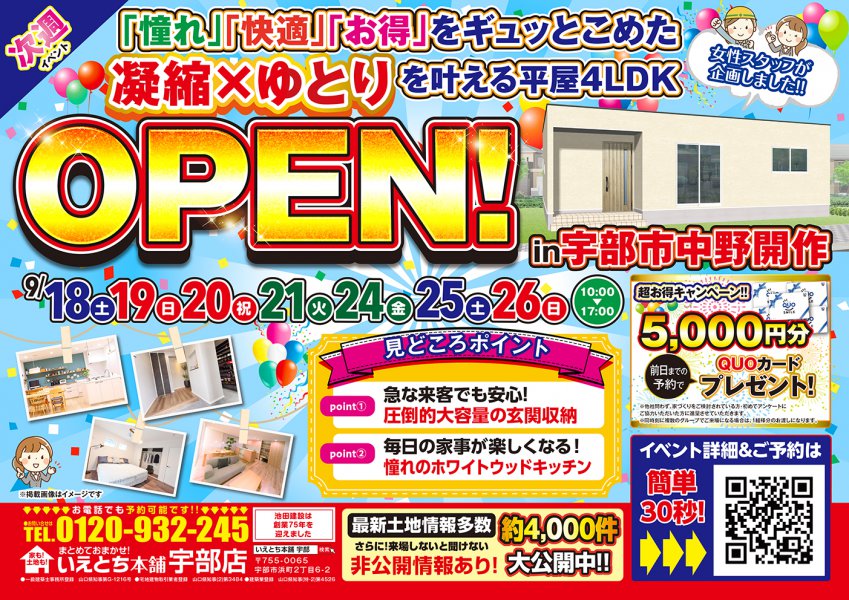 | 場所 | 宇部市大字中野開作古土手附27-4付近 (MAP) | 時間 | 10:00~17:00 |