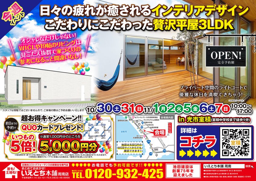 【光市室積】日々の疲れが癒される こだわりにこだわった贅沢平屋3LDK