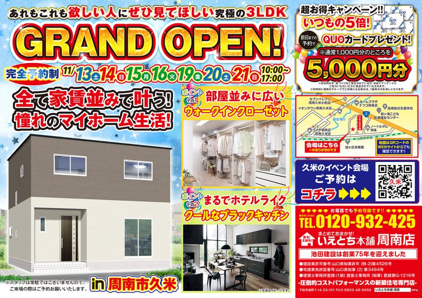 【周南市久米】あれもこれも欲しい人に必見!家賃並みで叶う究極の3LDK!