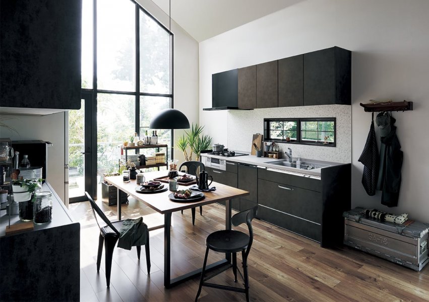 クールなブラックキッチンで