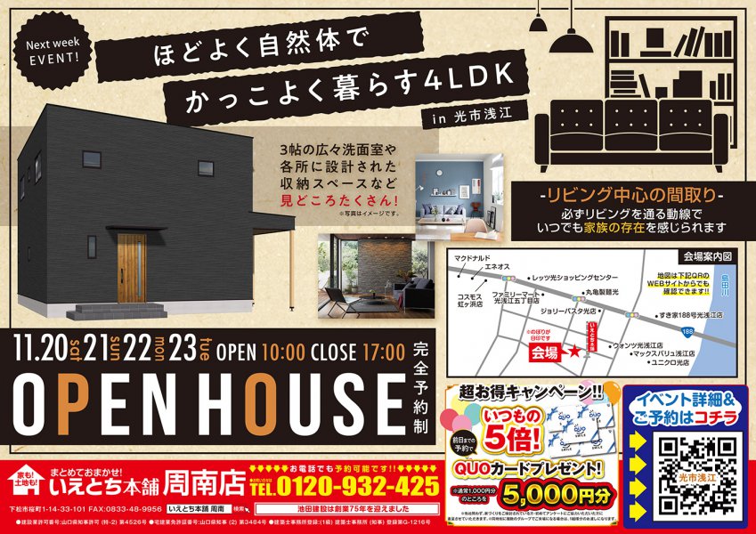 【光市浅江】ほどよく自然体でかっこよく暮らす4LDK OPEN!!
