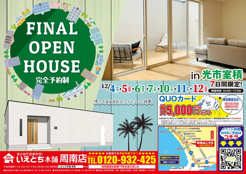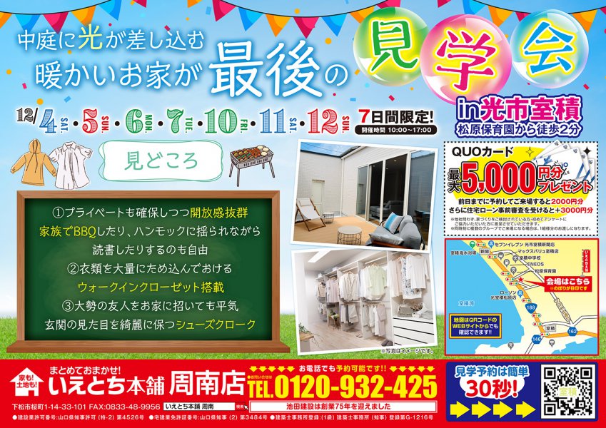 【光市室積】ライトコートに光が差し込む 大人気モデルハウス最後の見学会