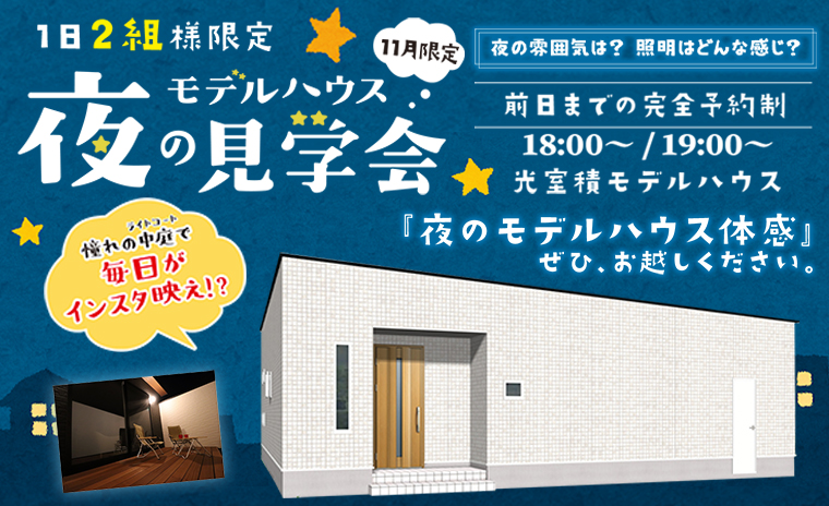 本当の家の良さがわかる「夜のモデルハウス体感」。
