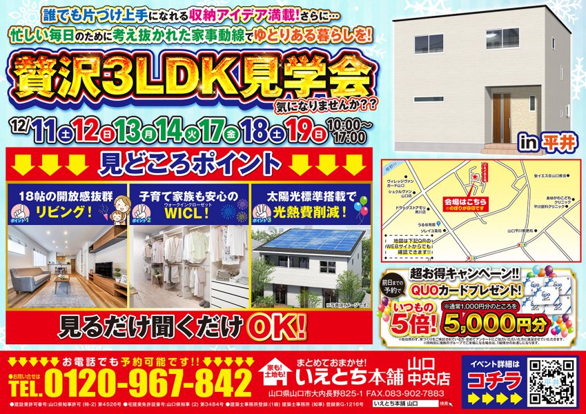 【山口市平井】誰でも片付け上手になれる収納アイデア満載!贅沢3LDK見学会!
