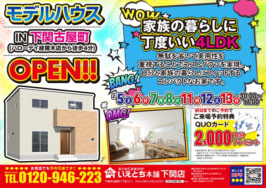【下関古屋町】4LDKモデルハウスOPEN!