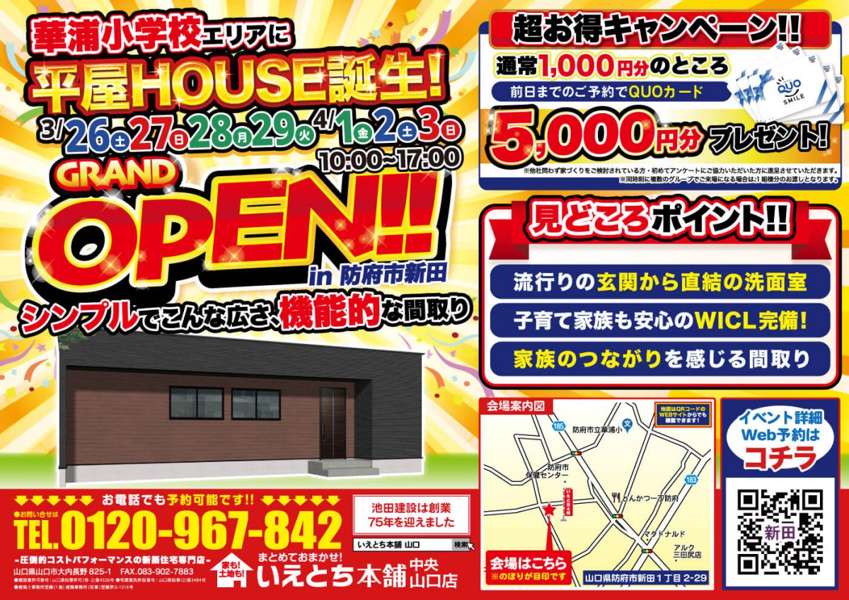 【防府市新田】華浦小エリアに平屋誕生!家族がつながる間取り!
