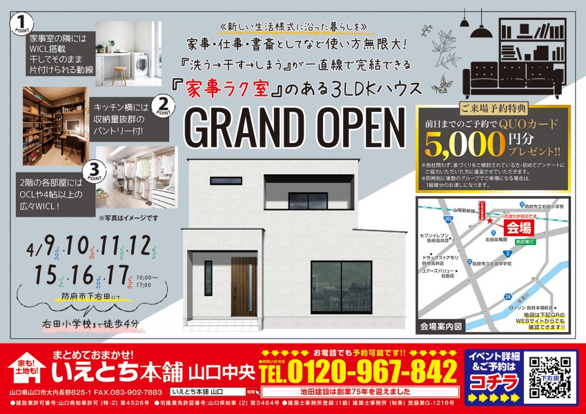 【防府市下右田】家事・仕事・書斎としてなど使い方無限大!『家事ラク室』のある3LDK GRAND OPEN!